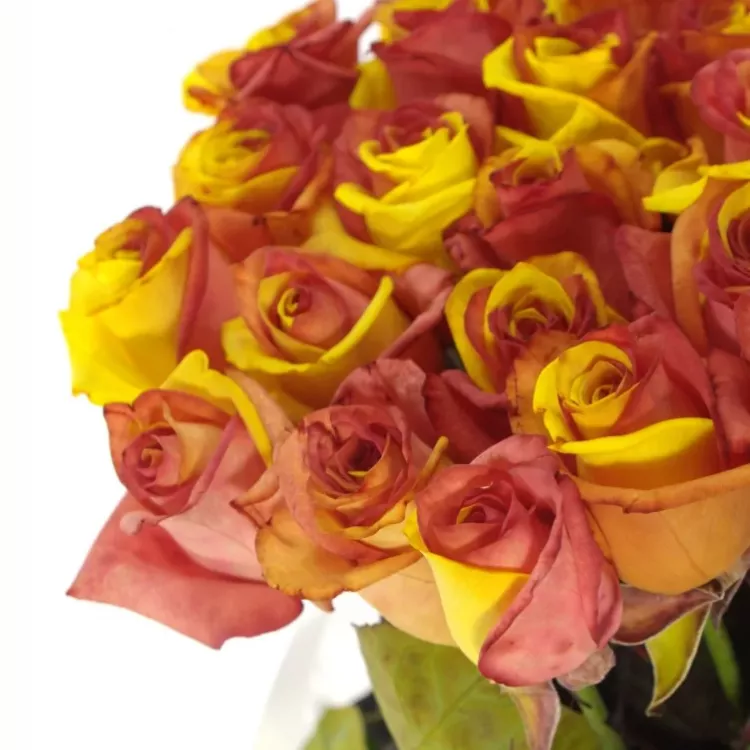 Tato unikátní ekvádorská růže s velkým květem byla obarvena precizní holandskou technologií, metodou Rainbow. Růži nijak neškodí ani jí neubírá na kvalitě. Krásná kombinace barev žluté a růžové probudí k životu každý domov.