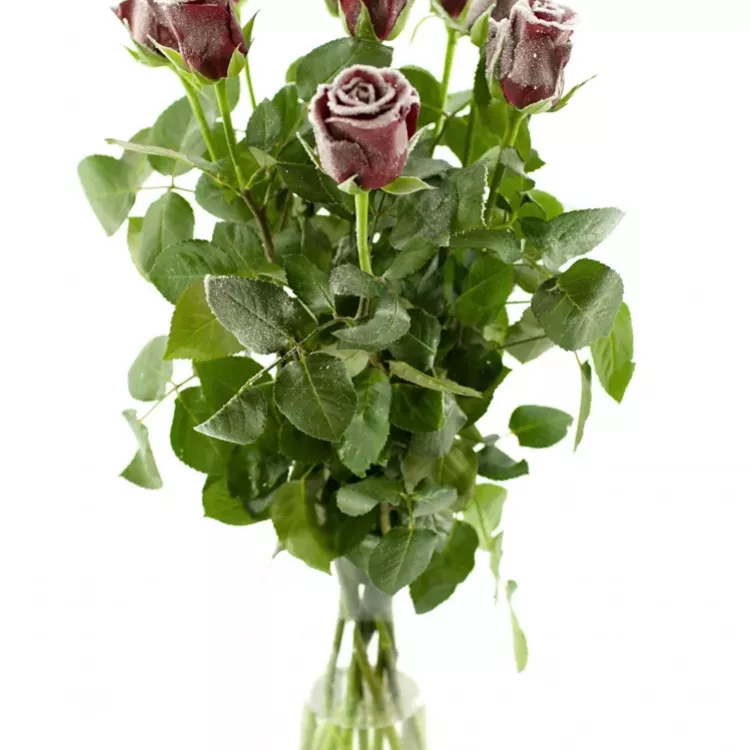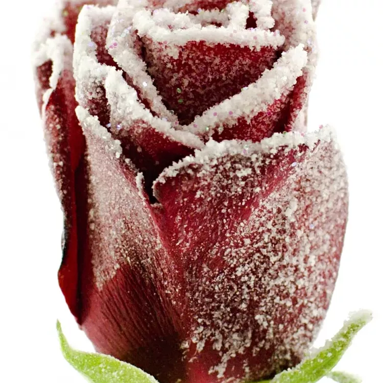 Čerstvá řezaná růže v úpravě kreativních tvůrců z dílny nizozemské firmy Vip Roses. Rudá růže byla pokryta speciální vrstvou drobných třpytek připomínající námrazu. Tato "ledová růže" jistě zahřeje u srdce každého, kdo ji dostane.
