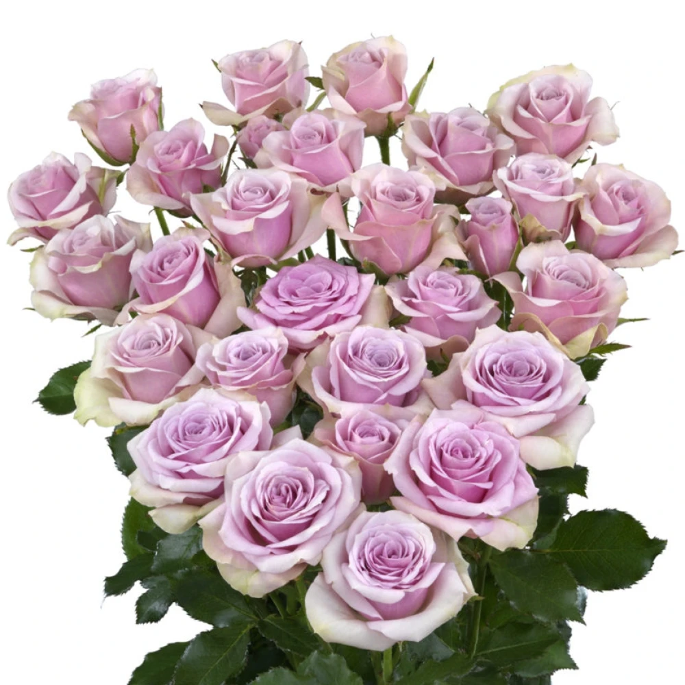 Fialová růže Leila, se čtyřmi květy na stonku, je vznešeným příkladem rafinované elegance. Její fialové odstíny jsou jako první ranní mraky na obloze při úsvitu.