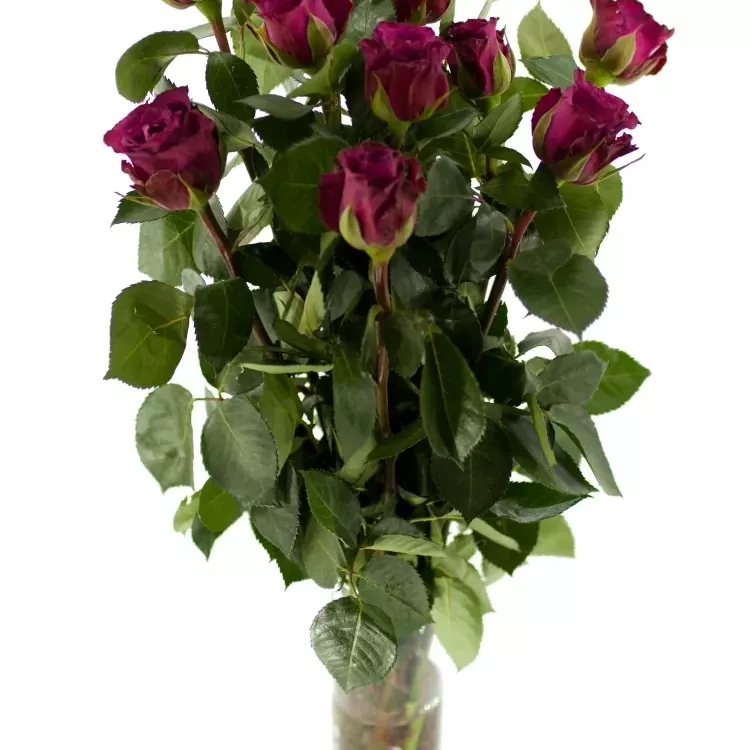 Fialová růže Purple Sky má středně velký květ, který je pevný a vzpřímený. Je to dáno vyšším počtem okvětních plátků (až 35) a také kvalitním kultivarem. Stabilitu a dlouhou životnost růže podporuje její opravdu silný velmi trnitý stonek. Jeho pravidelný zkracováním v kombinaci s výměnou vody je zárukou, že si růže užijete minimálně 10 dnů.