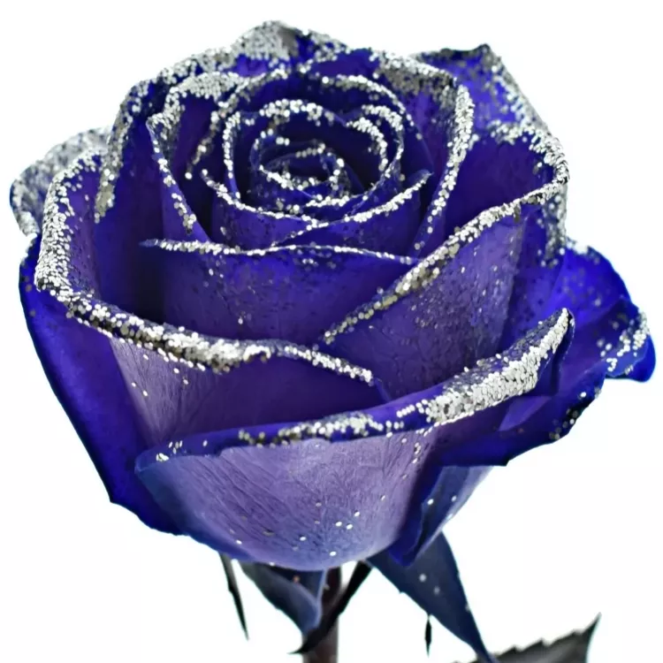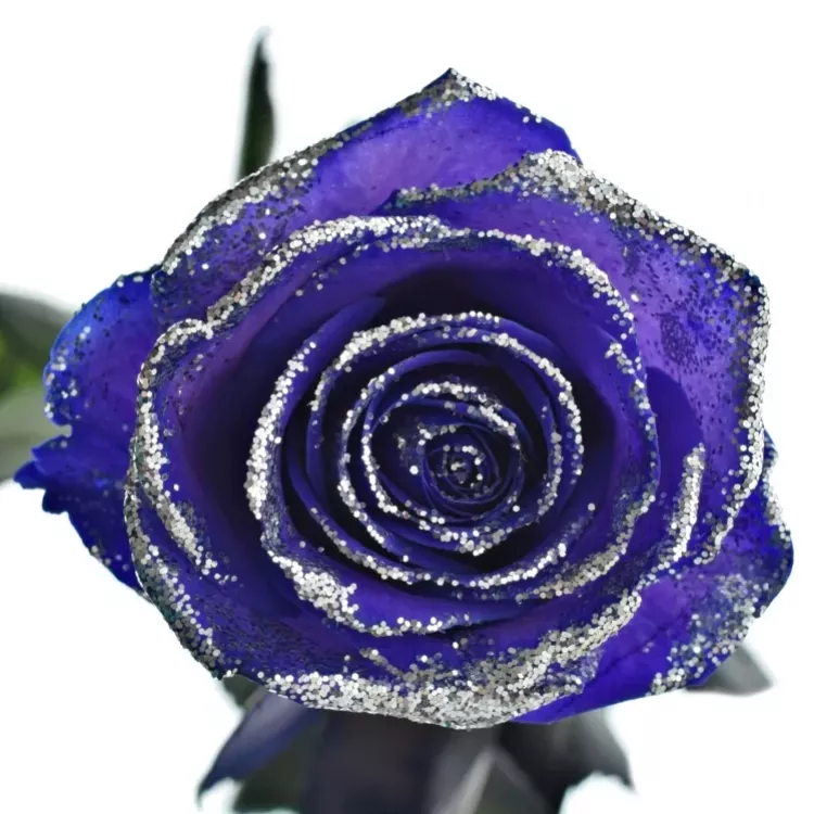 Růže Purple Vendela Silver Glitters je známá svými elegantními stříbrnými třpytkami, které zdůrazňují její hlubokou purpurovou barvu. S délkou stonku 60 cm a velikostí květu M je tato růže ideální pro výrazné aranžmá nebo jako dominantní prvek v kytici. Vznikají zdravotně nezávadným barvením prémiových krémových růží, což jim dodává jejich výjimečný vzhled.
