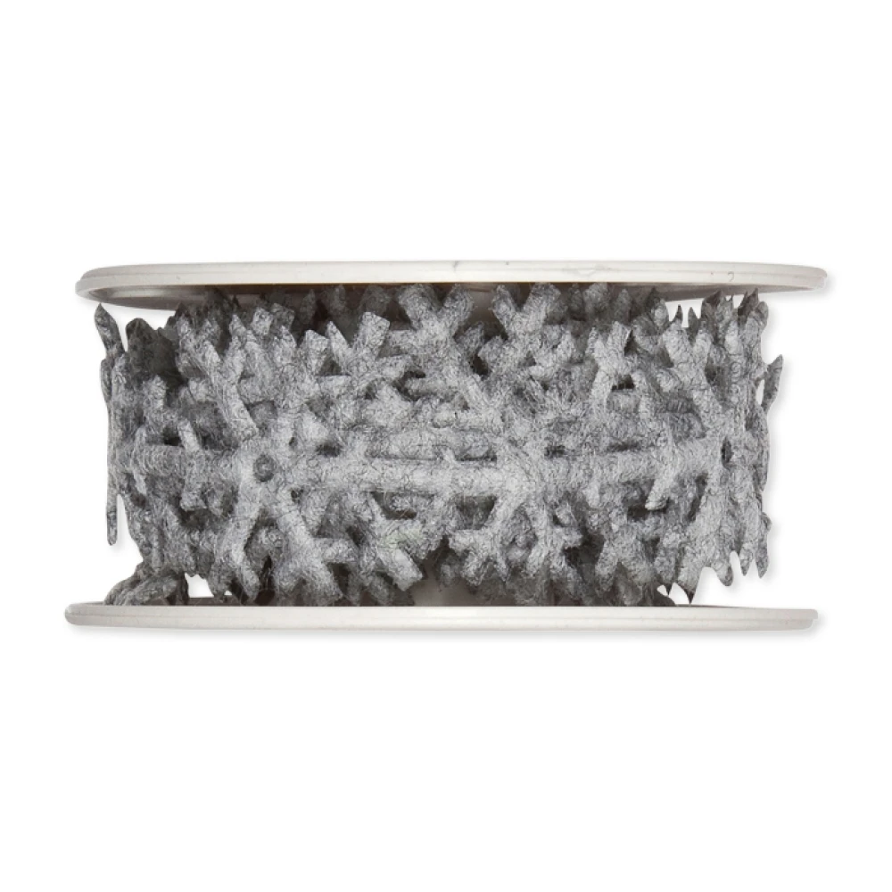 - Filcová stuha s vločkami šedá 25mm x 2m