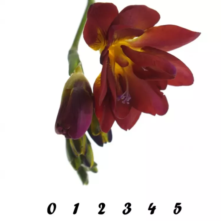 Označení frézií: EN - frézie s jednoduchými květy, DU - frézie plnokvěté. V porovnání s délkou stonku snadno poznáte velikost květu. Jak pečovat o frézie najdete v našem videu a taky v článku