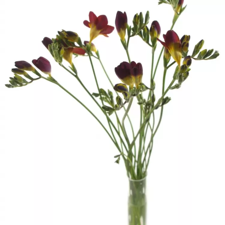Kvalitní řezané frézie do vázy. Fialové, žluté, růžové, červené a bílé frézie okouzlující krásy a vůně. Vznešené a okrasné květiny pro zpestření interiéru. Řezané frézie dodáváme v balení po 5 a více kusech.