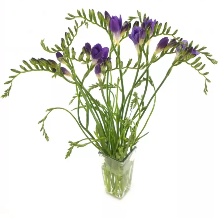 Chybí vašemu květinovému mixu elegance? Stačí pár fialových frézií Valda, které si Vás jistě získají svou vůní i světle fialovými kvítky. Tyto frézie mohou být i součástí elegantní svatební kytice nebo kytice k narozeninám.