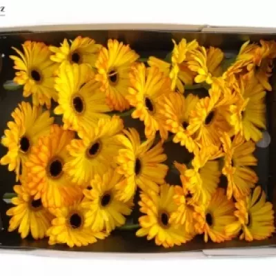 Kultivar GR Catwalk oslní překrásnou zlatavou barvou podtrženou oranžovým žíháním. Patří mezi velké gerbery, kterým sluší kombinace s méně dominantními květinami, například s trsovými růžemi anebo s bouvardiemi.