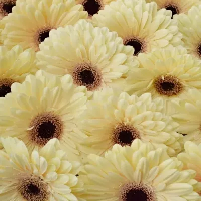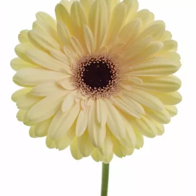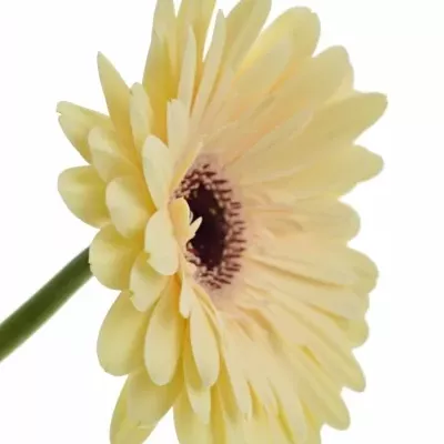 Gerbera GR Tender, ztělesňující jemnost svého jména, je okouzlující s jejími krémově žlutými okvětními lístky, které jemně obklopují tmavší střed. Tato odrůda je známá svou robustní stavbou a dlouhým obdobím kvetení, což ji činí oblíbenou volbou pro dekorace i jako dárek.