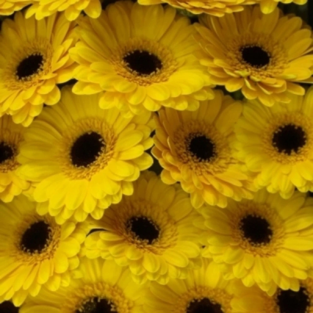 Mini Gerbera Solero přináší sluneční paprsky do každé kytice s jejími sytě žlutými květy a tmavě hnědým středem. Květy jsou známé svou dlouhou životností a výdrží.