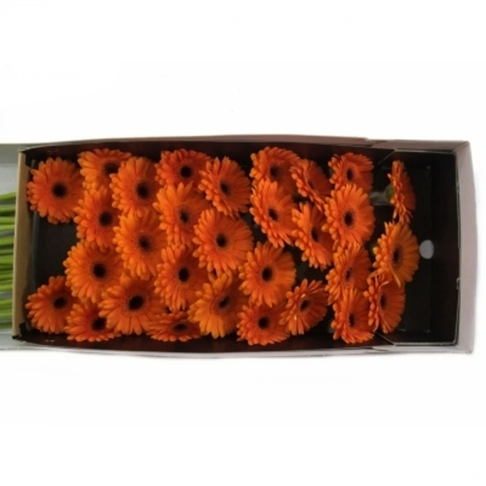 Mini Gerbera Spirit oslní svým živým oranžovým odstínem, který se rozprostírá od jemně vroubkovaných okrajů až k sytě černému srdci květu. Odrůda se vyznačuje robustností a dlouhou životností.