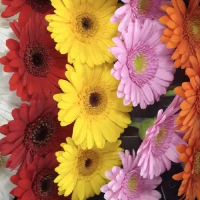 - Gerbery různých barev ukládáme do krabice po 30ti kusech.