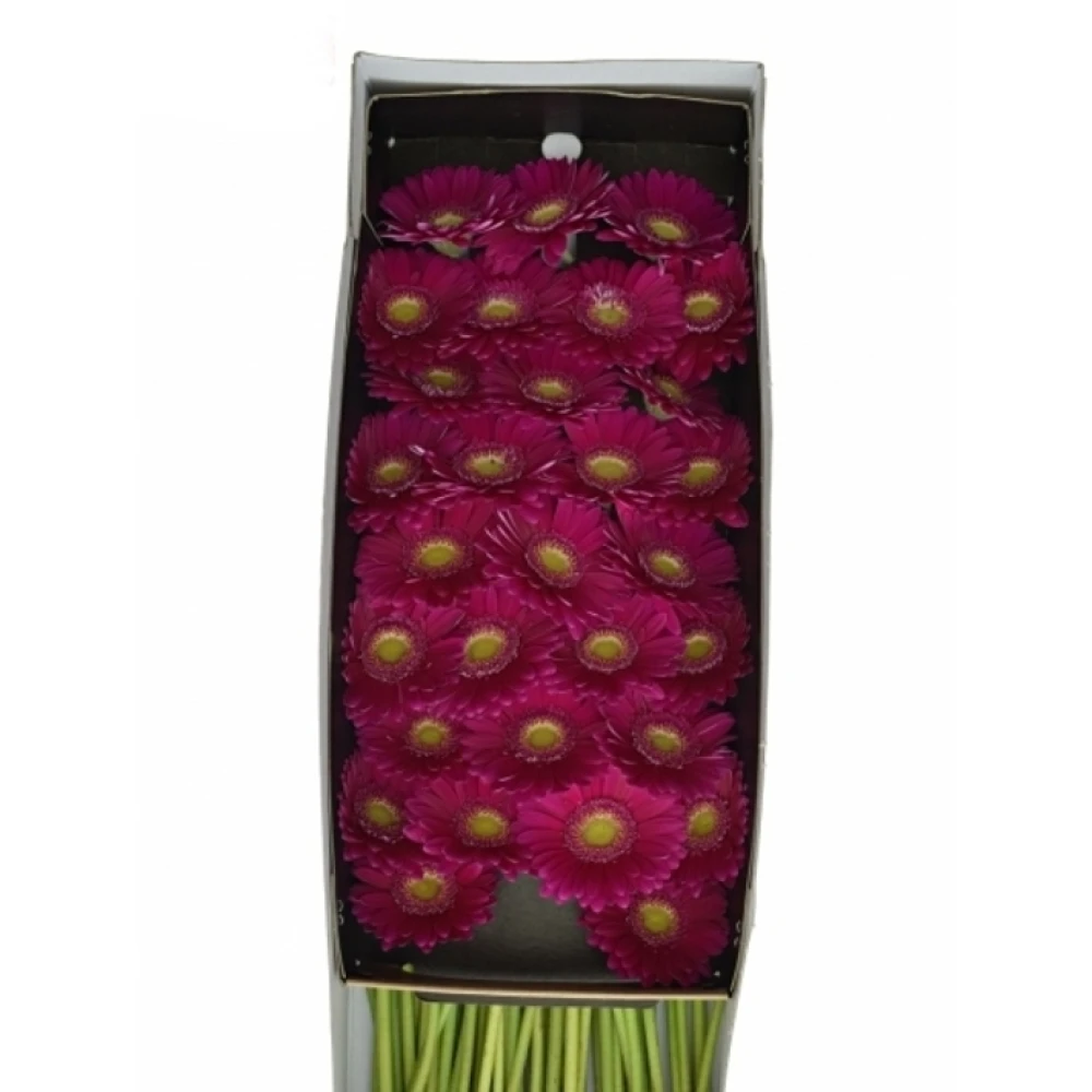 Mini gerbera VIVIAN (WATER) je svěží a očarující květinou, která přitahuje oko svou sytou růžovou barvou a živým, zlatavým středem. Odrůda gerbery je populární díky svému tvaru a velkým, zářivým květům, které jsou ideální pro vytváření jasných a veselých aranžmá. Květina je skvělou volbou pro rozjasnění kanceláří, obývacích pokojů nebo jako středový prvek ve vázách a kyticích na slavnostních událostech.