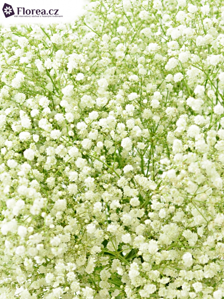 Gypsophila je vytrvalá květina s dřevnatým kořenem a několika bohatě větvenými lodyhami. Je známá jako dekorační zeleň, která se využívá především do svatebních vazeb. Bohatě se uplatní také v okrasných zahradách. Nejlépe vynikne v kytici rudých růží. Gypsophilu můžete zakoupit v délkách od 50 do 90 centimetrů online na Florea.cz