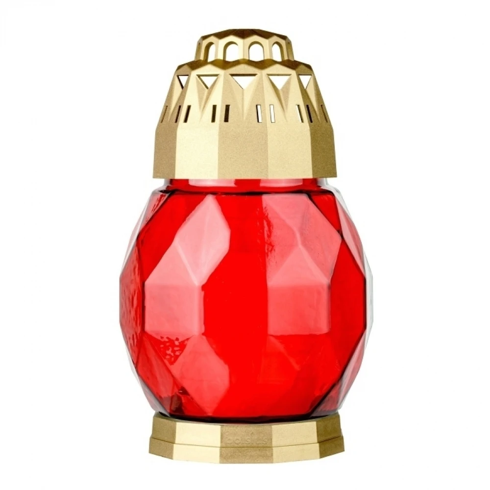 Hřbitovní lucerna skleněná Diamant červenozlatá 24 hod (výška 180 mm, šířka 110 mm)