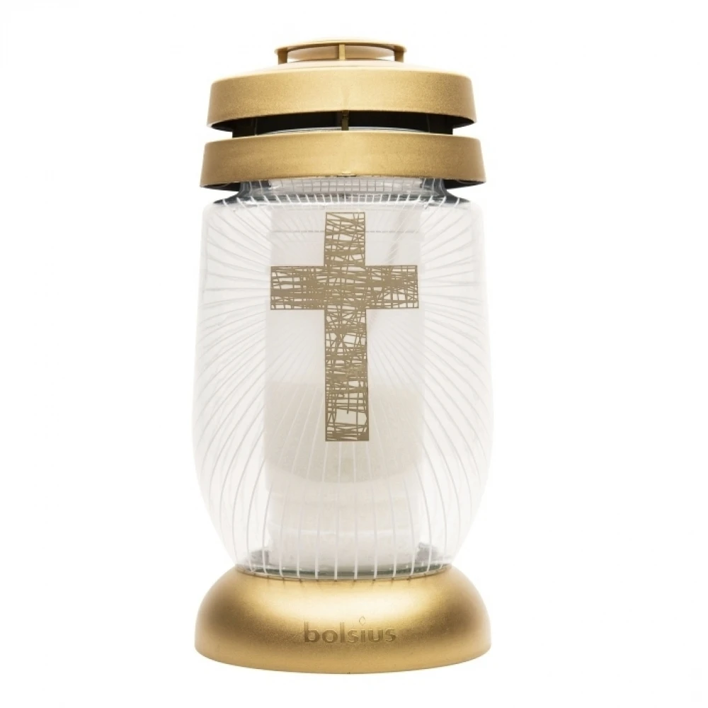 Zlatý kříž symbolizuje víru, naději a nekonečnou lásku. Tato lucerna přináší pocit duchovního klidu a poskytuje prostor pro vzpomínání a uctění památky.
