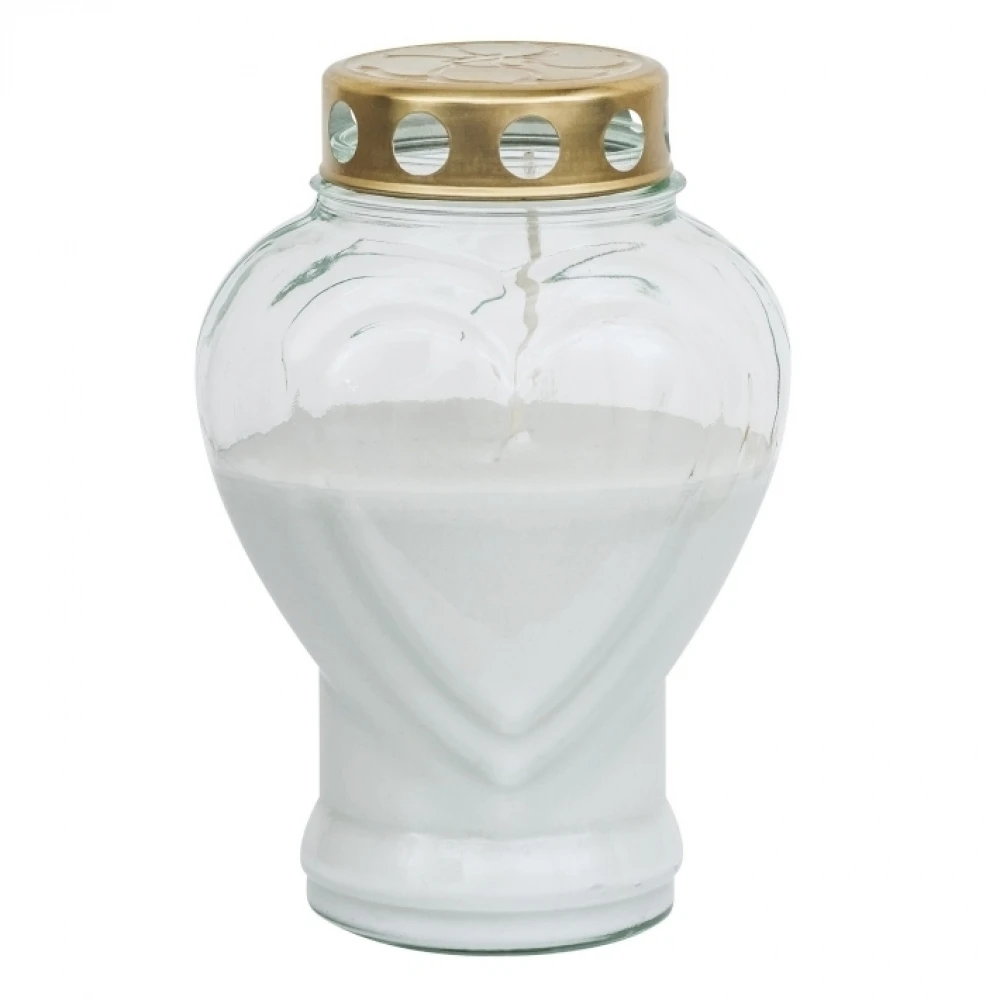 Hřbitovní lucerna s motivem srdce a výdrží 80 hodin je vyrobena z odolného skla. Její unikátní design ve tvaru srdce a dlouhá výdrž světla činí tuto lucernu výjimečnou a hodnotnou. Náplň je vyrobená bez palmového oleje, hoří čistě a beze zbytku.