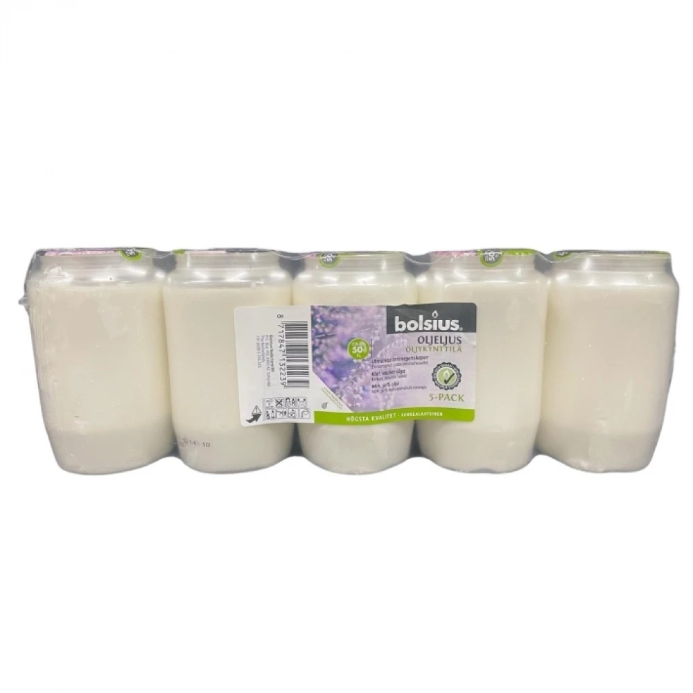 Balení pěti hřbitovních svíček s ECO olejovou náplní je určené pro hřbitovní lampy a lucerny. Každá svíčka má dobu hoření až 48 hodin a její náplň dohoří až do konce. Náplně jsou vyrobeny bez palmového oleje, což zvyšuje jejich ekologickou šetrnost.