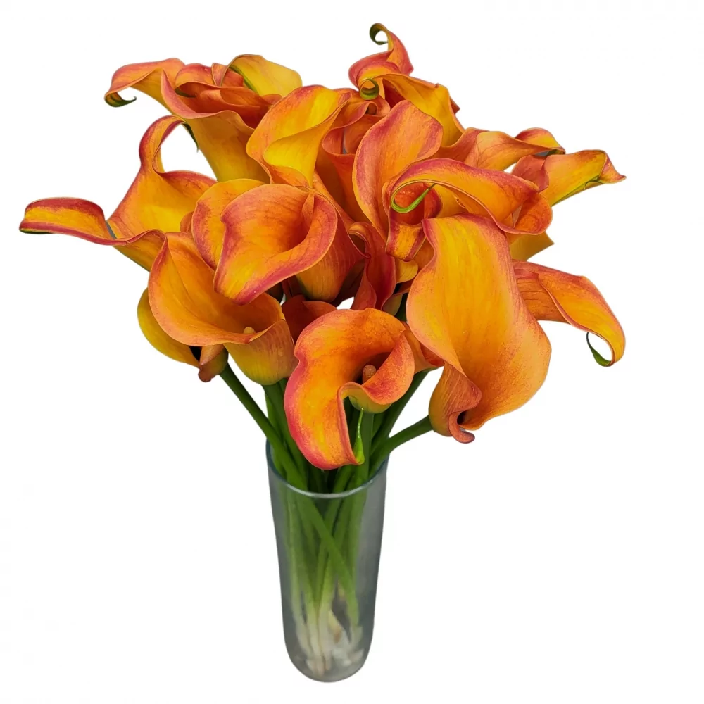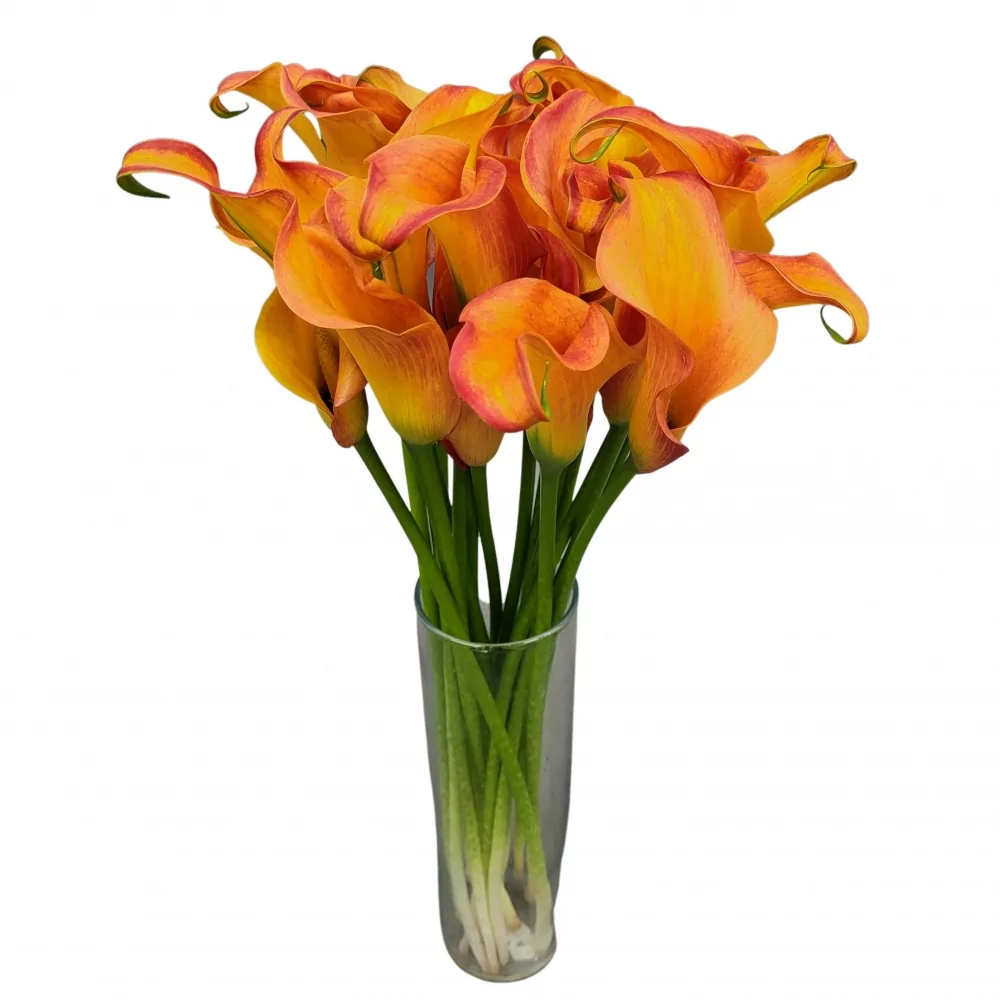 Oblíbené a kvalitní svatební květiny překrásných barev. Žluté, fialové, oranžové a bílé řezané kaly do vázy nebo k do kytice k svátku. Romantické i extravagantní odrůdy vysoké kvality a pro všechny příležitosti. U nás najdete kaly spolehlivých nizozemských pěstitelů v několika délkách a velikostech.