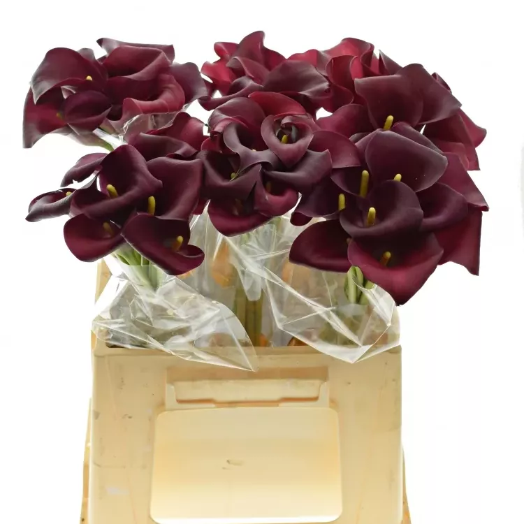 Oblíbené a kvalitní svatební květiny překrásných barev. Žluté, fialové, oranžové a bílé řezané kaly do vázy nebo k do kytice k svátku. Romantické i extravagantní odrůdy vysoké kvality a pro všechny příležitosti. U nás najdete kaly spolehlivých nizozemských pěstitelů v několika délkách a velikostech.