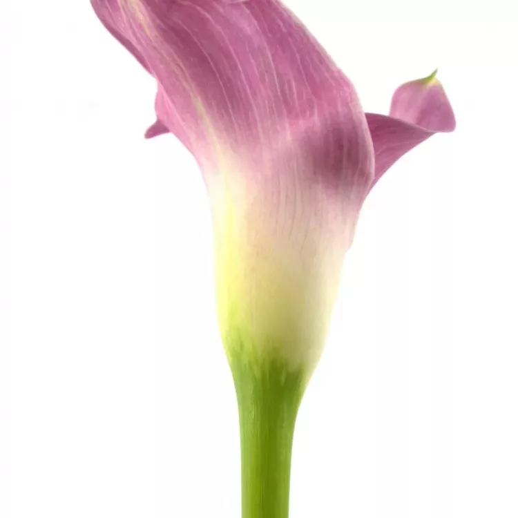 Pro někoho možná pyšná, pro většinu ale elegantní květina, která každé kytici hravě vdechne špetku luxusu. I samotná ve vysoké váze umí tato fialová kala s bílým nádechem zkrášlit kterýkoliv interiér.