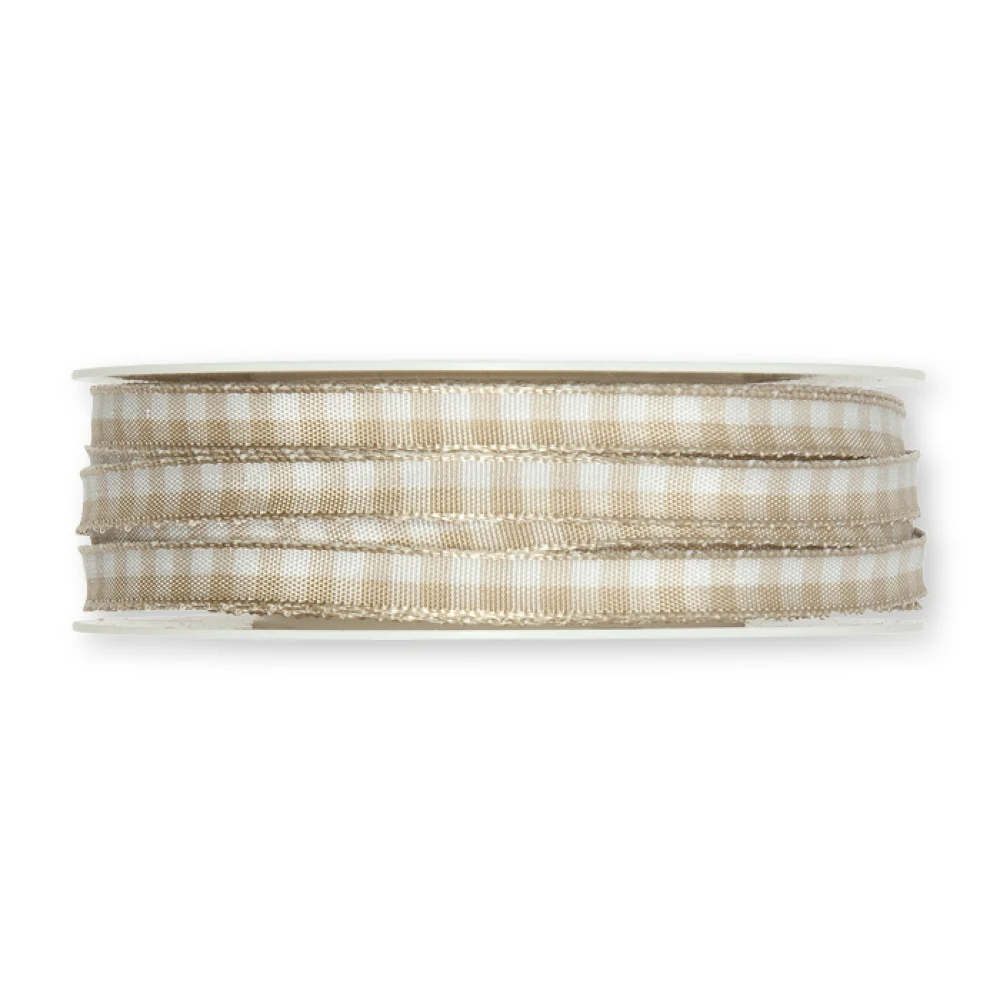 Kostkovaná stuha s drátěným okrajem - krémová krémová 8mm x 25m