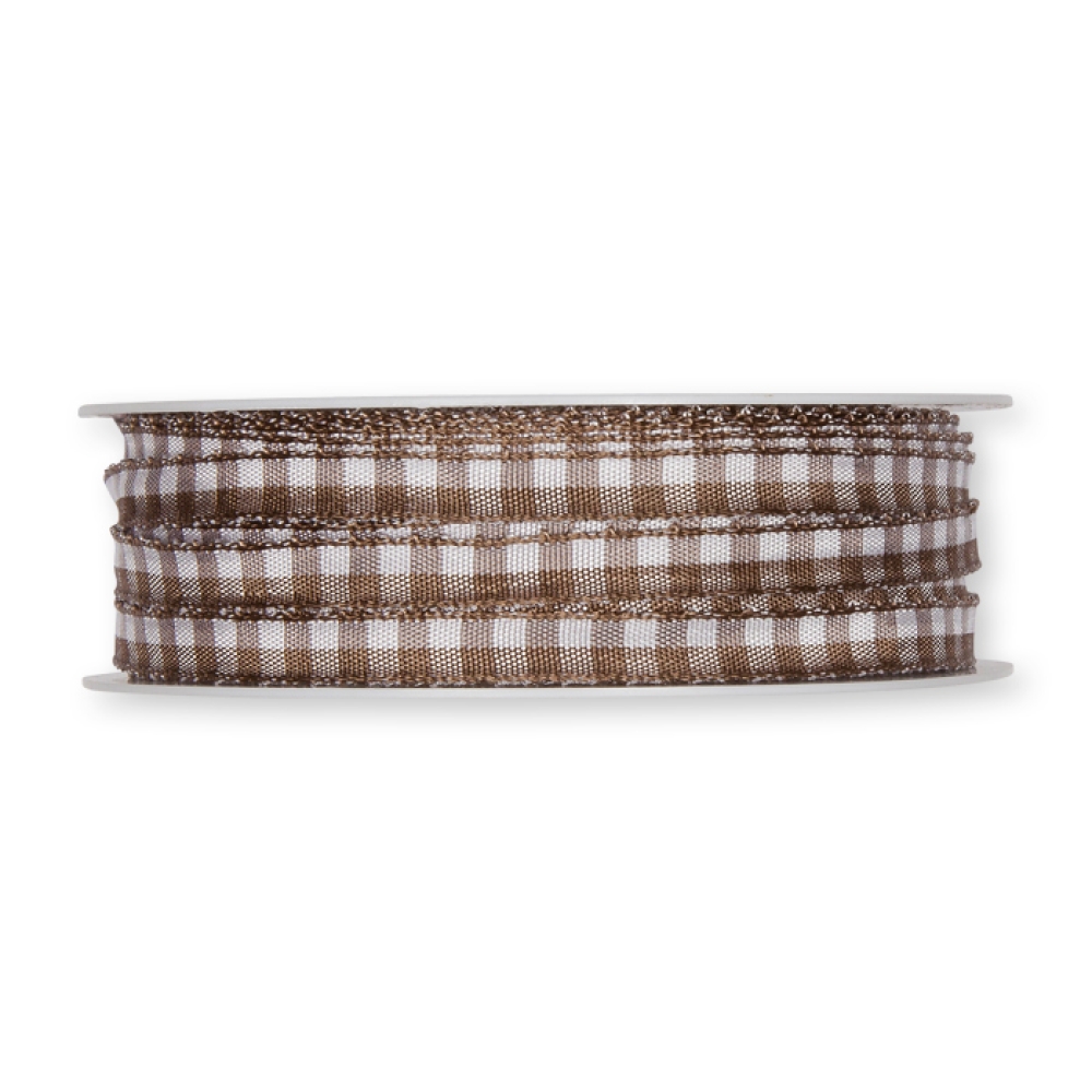 Kostkovaná stuha s drátěným okrajem - tmavě hnědá