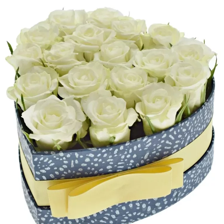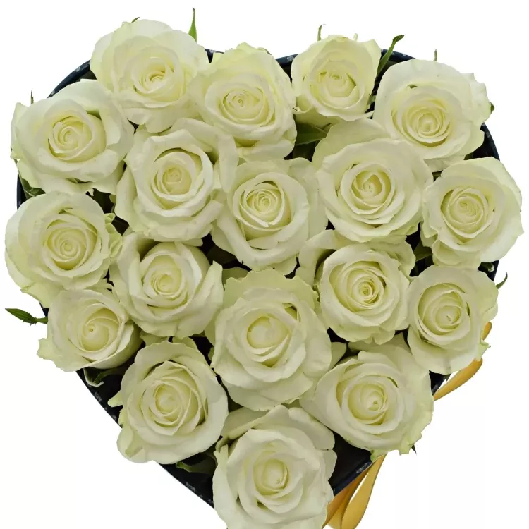 - v modré krabičce ve tvaru srdce je 18 sněhově bílých růží Aspen!
