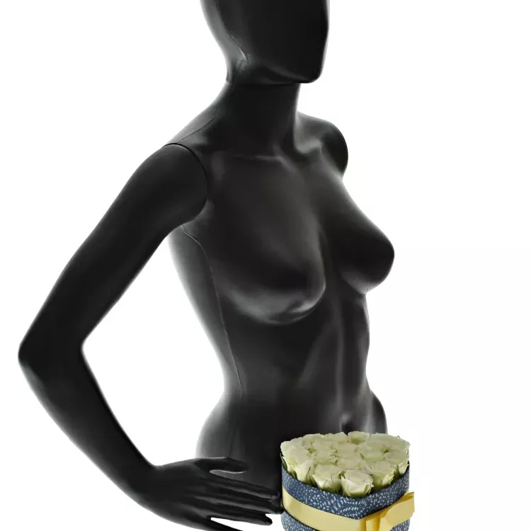 - Krabička bílých růží ASPEN! modrá 15x8cm