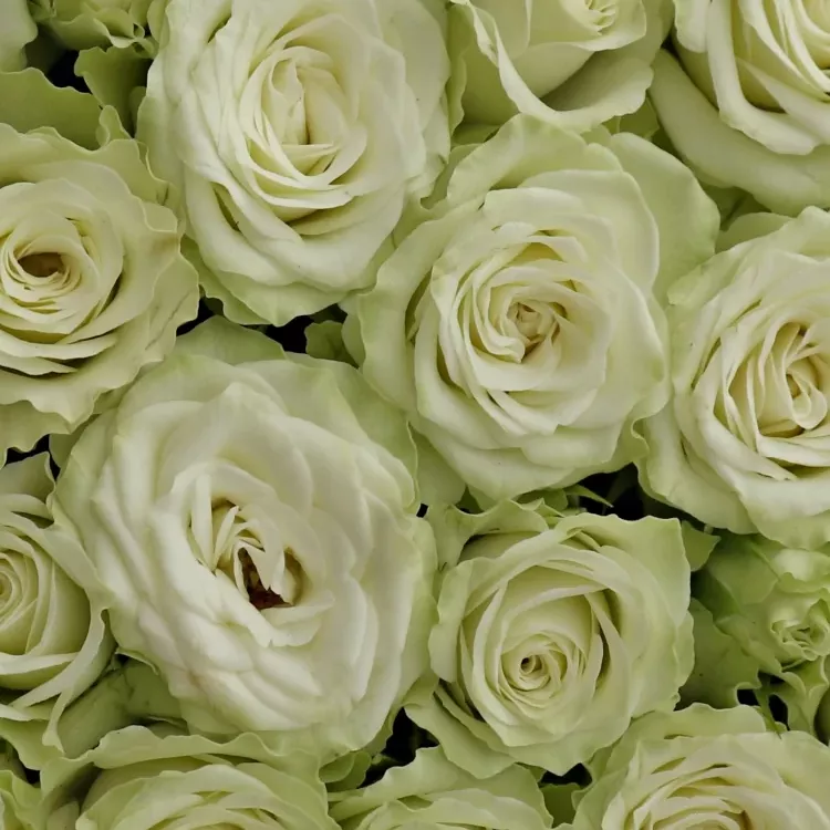 Drobná kvítka bílých trsových růží s nádechem do zelenkava jsou elegance a mladistvost sama. Sluší milým a duchem mladým ženám, které se nechávají rády rozmazlovat drobnými pozornostmi, jakými jsou květinové dárečky od srdce.