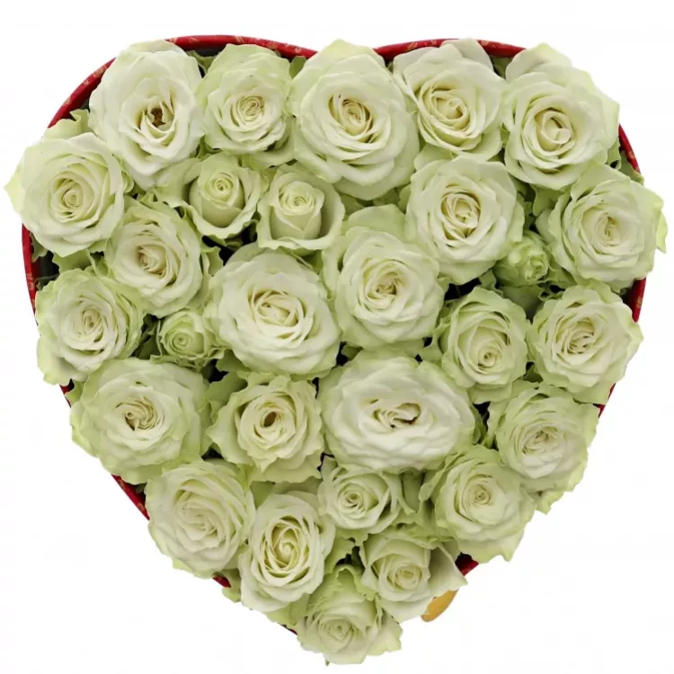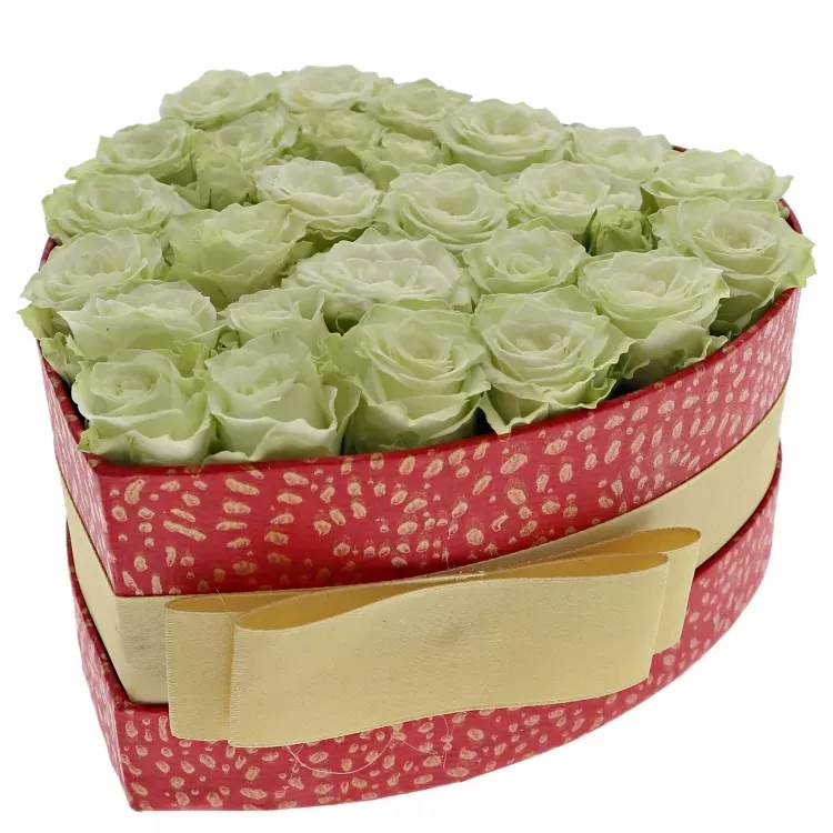 Krabička bílých růží GREEN GLOW červená 15x8cm