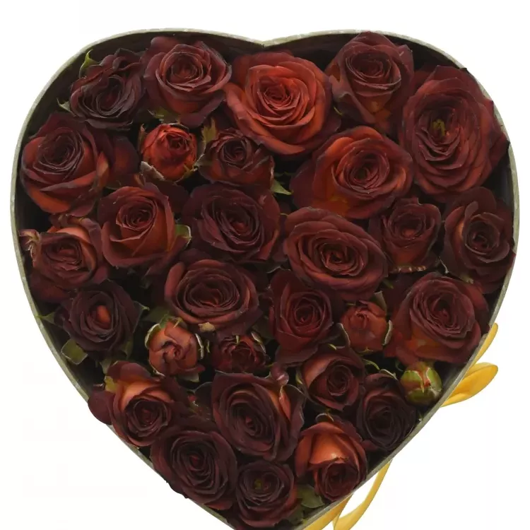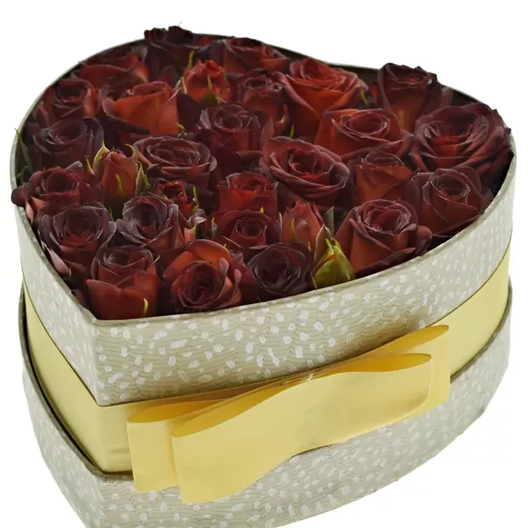 - šampaň krabička ve tvaru srdce naplněná květy s čokoládovým odstínem