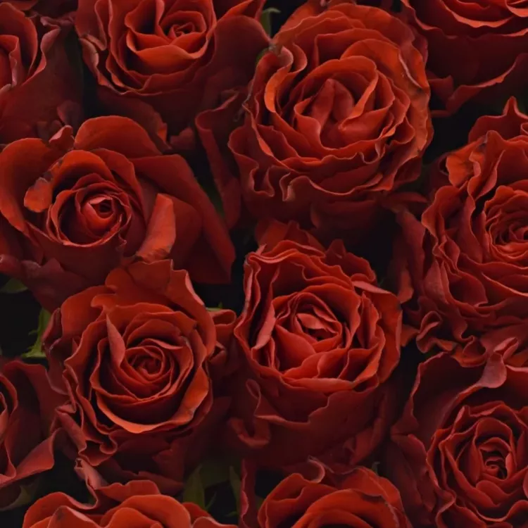 - rubínově červené květy růží s odstínem tmavě rudé