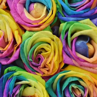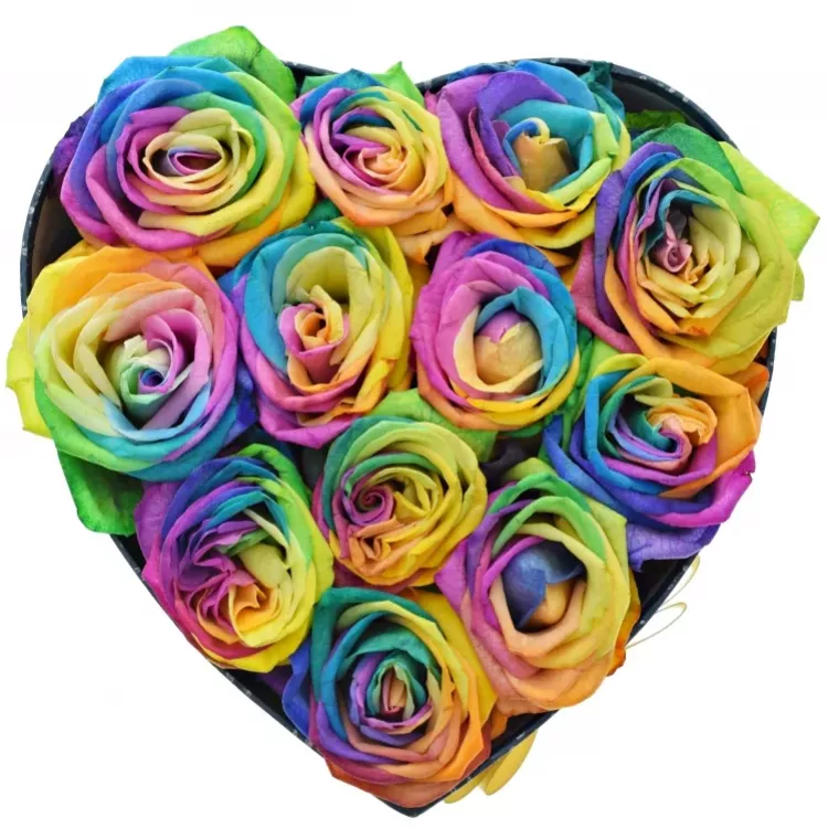 Krabička duhových růží RAINBOW modrá 19x9cm