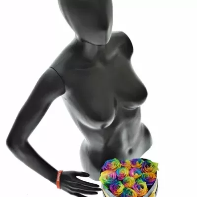 - Krabička duhových růží RAINBOW modrá 19x9cm