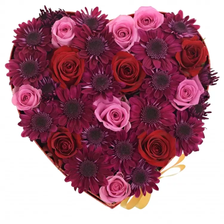 - květinová krabička s kombinací růží a chryzantém