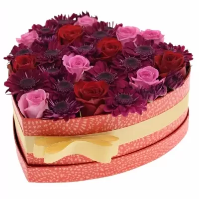 Když cítíte, že jí chcete dát své srdce. Srdce, které prudce buší touhou, sladce voní a slibuje nádherné dny plné romantiky. Taková je květinová krabička, ve které se snoubí vášeň s romantikou.