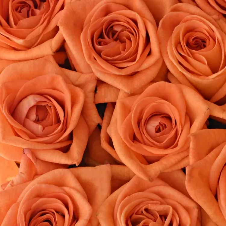 - květy oranžových růží s matným odstínem,