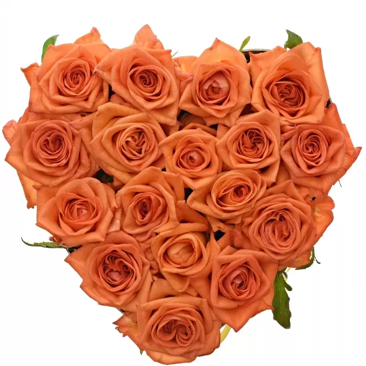 - Srdce v červené barvě plné oranžových růží,