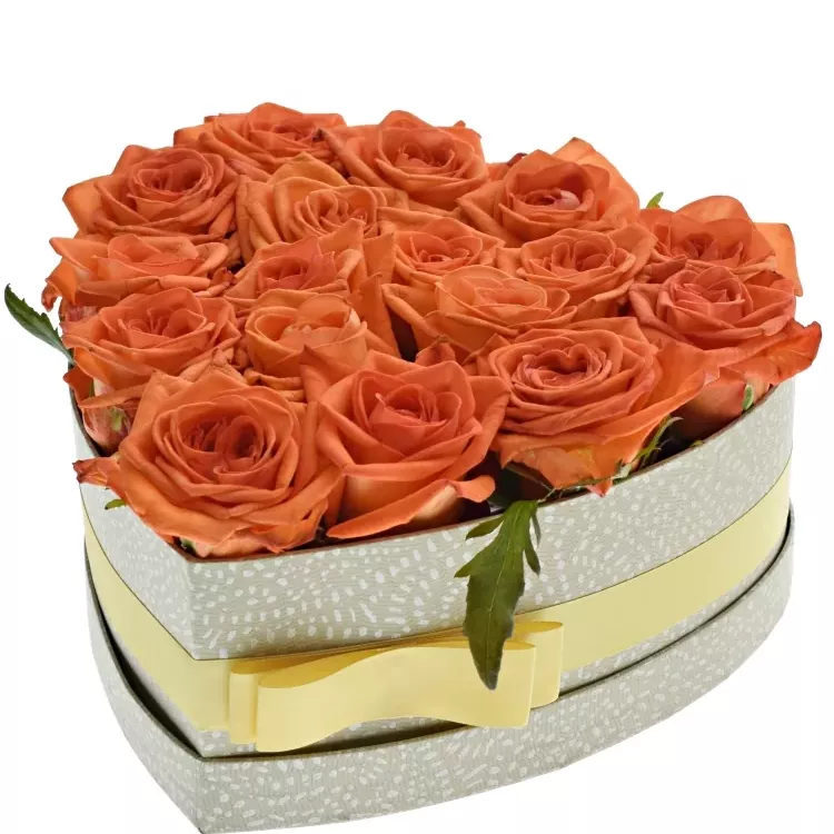 - Srdce v barvě šampaň plné oranžových růží,