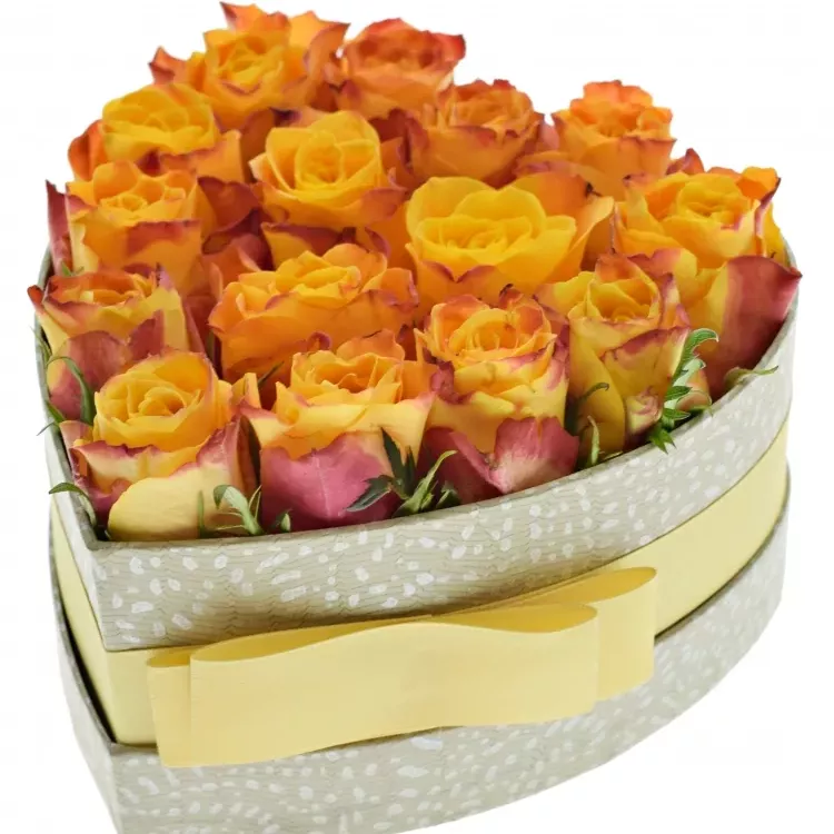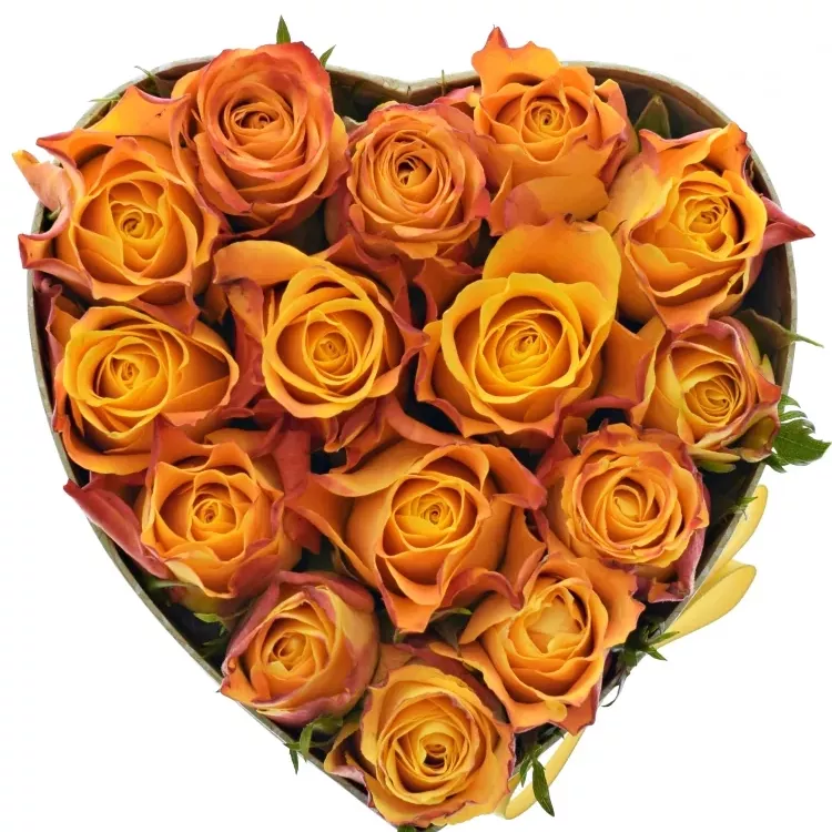 Krabička oranžových růží SOMBRERO šampaň 15x8cm