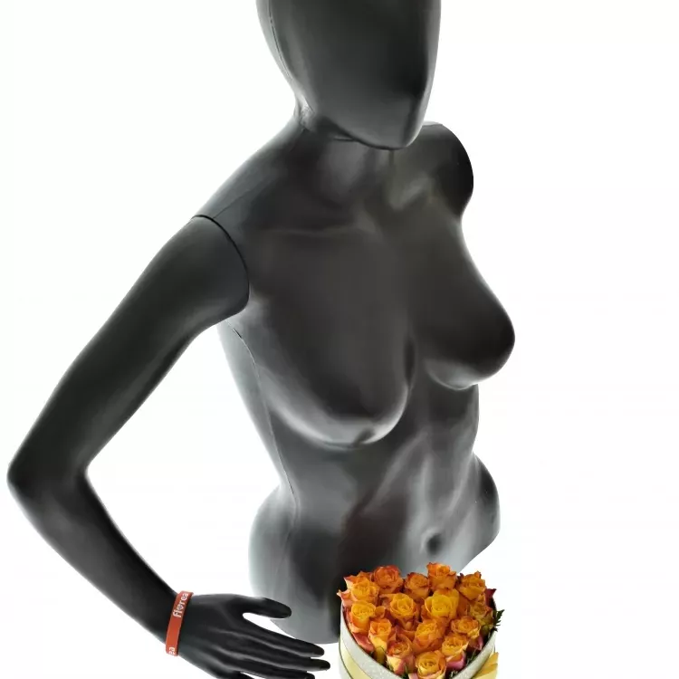 - Krabička oranžových růží SOMBRERO šampaň 15x8cm