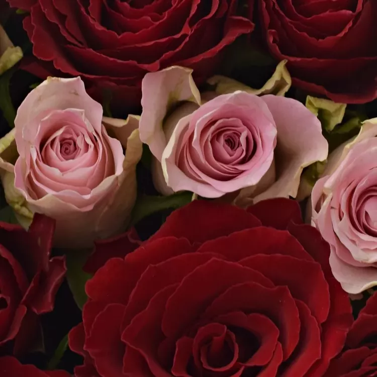 - světle růžové růže Bisou zjemňují výraznou červenou barvu.