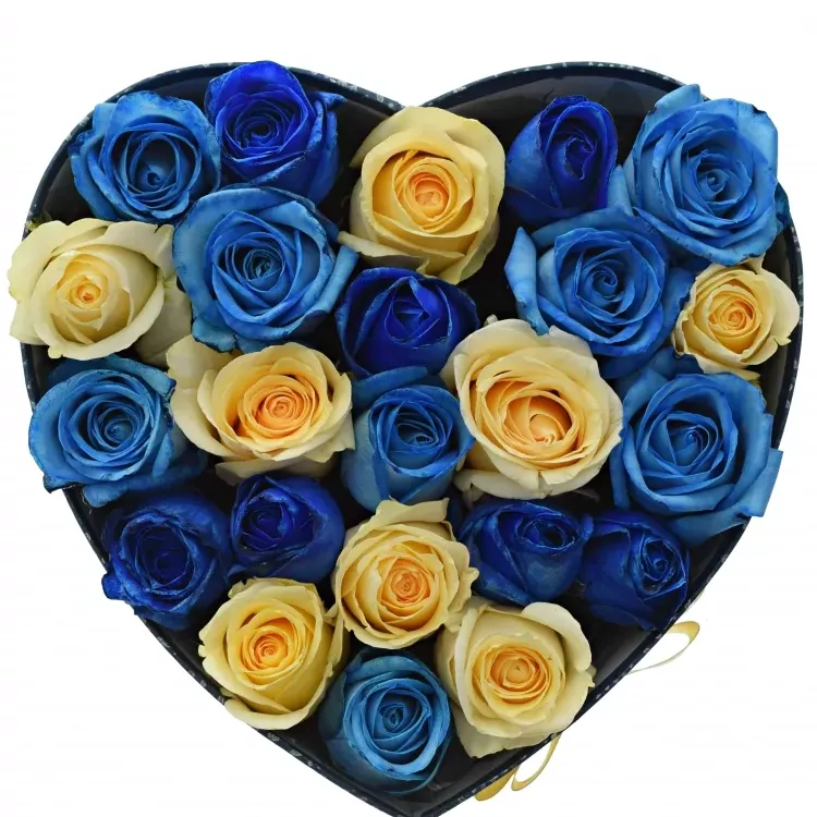 - naplněná modrými, světle modrými a meruňkovými růžemi