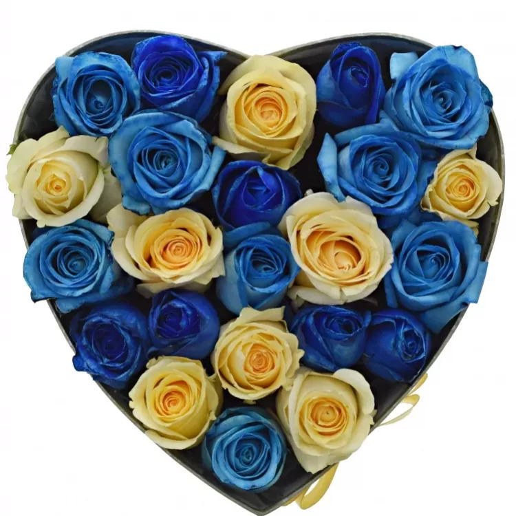 - naplněná modrými, světle modrými a meruňkovými růžemi