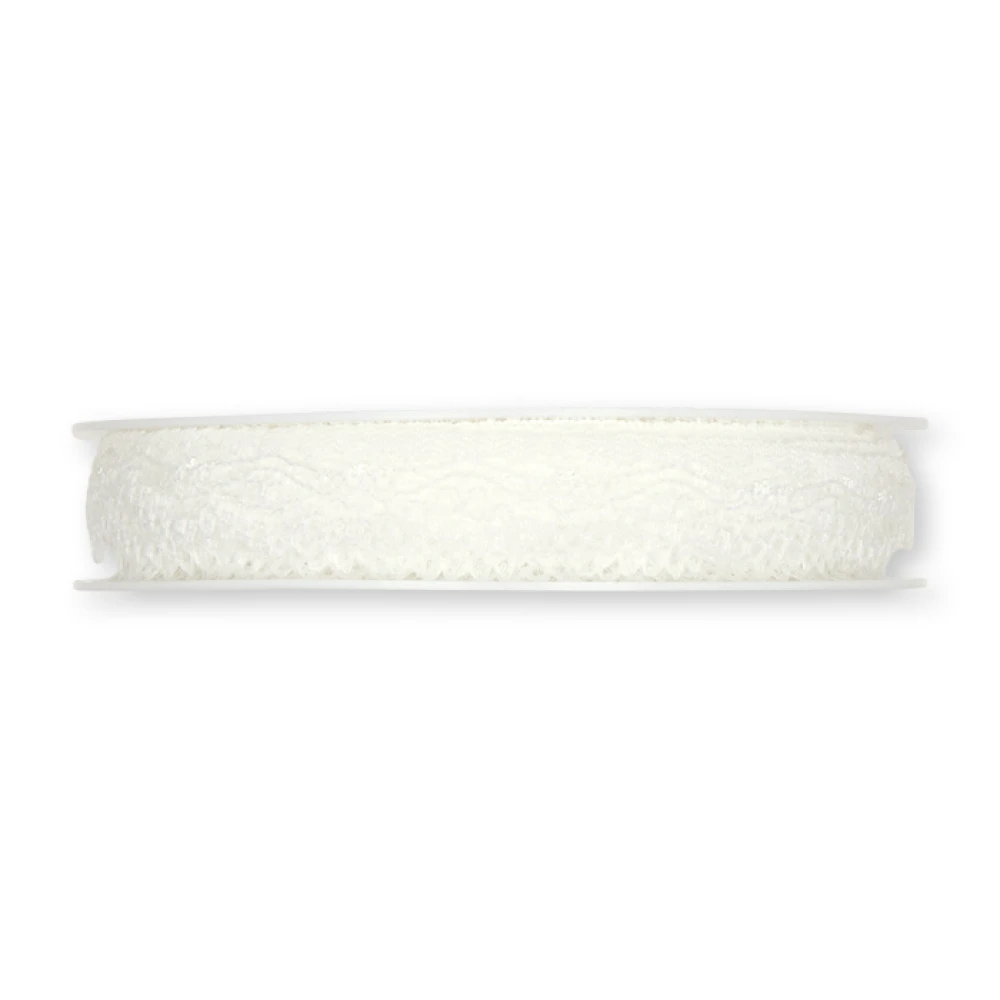 - Krajková stuha květovaná bílá 13mm x 18m