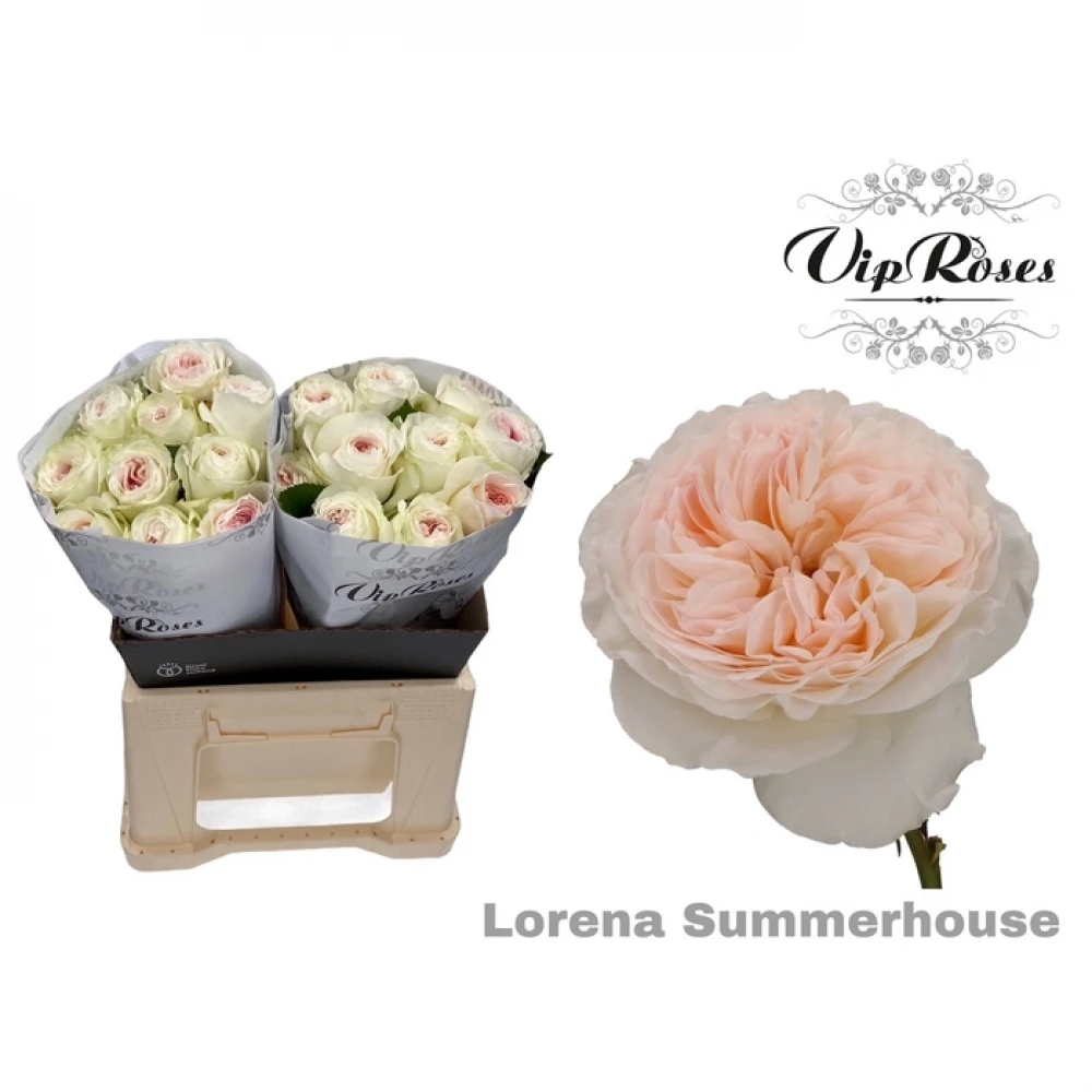 Růže LORENA SUMMERHOUSE představuje okouzlující odrůdu, která se vyznačuje svými bohatými, plně dvojitými květy s jemným přechodem od světle růžových středů k bílým okrajům. Přináší s sebou eleganci a sofistikovanost, která je typická pro exkluzivní odrůdy růží od VIP Roses. Její nadčasová krása a mimořádně velké květy jsou výsledkem precizního šlechtění a pečlivé péče.