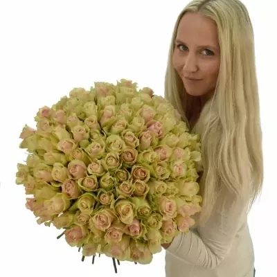 Kytice 100 krémovozelených růží LA BELLE 40cm
