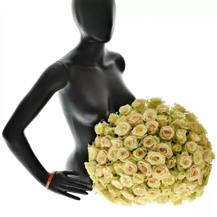 Kytice 100 krémových růží SAHARA ISLAND 50cm