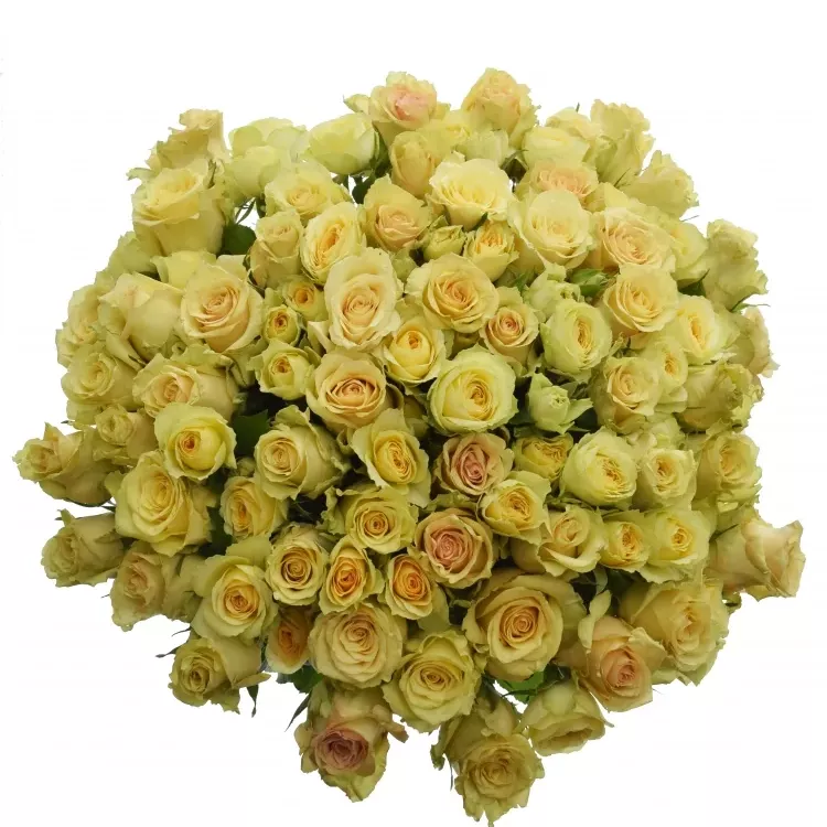 Každá mnohokvětá trsová růže má jeden stonek s více květy, proto v kytici 100+ květů může být např. 14, 20, 25 i více stonků. Počet stonků tedy přímo závisí na konkrétní odrůdě a počtu jejích květů.