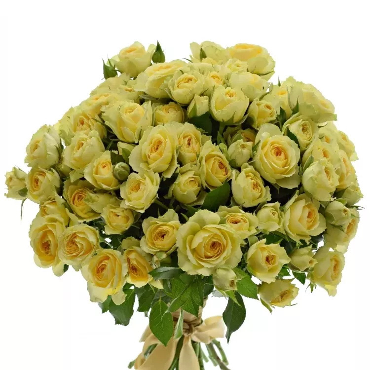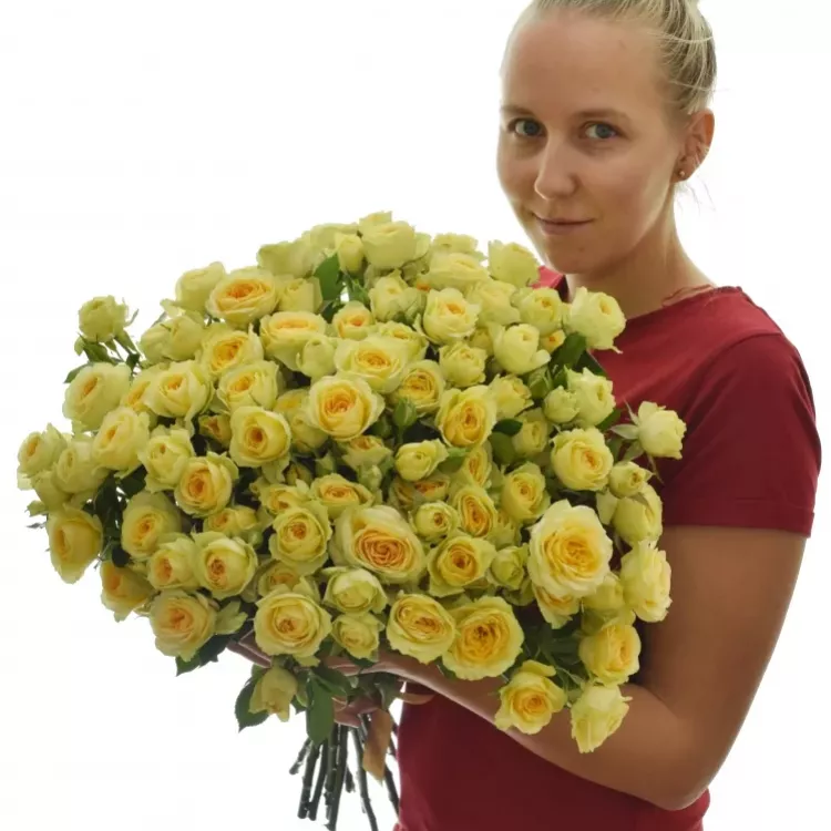 Jak květomluva napovídá, krémové růže jsou vhodné pro první setkání. Vyznačují sympatii, lásku a žádné další postranní úmysly. Kytice 100 růží k nám byla dovezena z Holandska, kde na svůj jeden stonek nechala vyrůst čtyři a více květů. Trsové růže jsou stále více populární, nepůsobí tak gigantickým dojmem, ale naopak tak roztomile.
