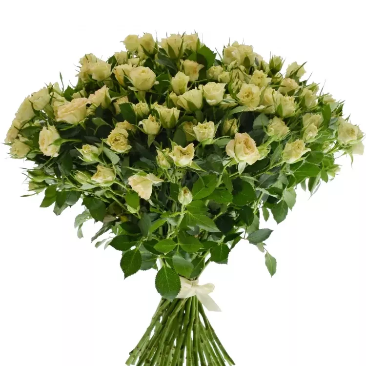 Každá mnohokvětá trsová růže má jeden stonek s více květy, proto v kytici 100+ květů může být např. 14, 20, 25 i více stonků. Počet stonků tedy přímo závisí na konkrétní odrůdě a počtu jejích květů.